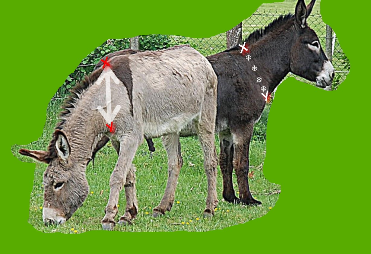 Il faut en effet prendre la mesure entre en avant de la bosse du garrot (X) et en bas au niveau de la gorge (Y) en avant de l’omoplate