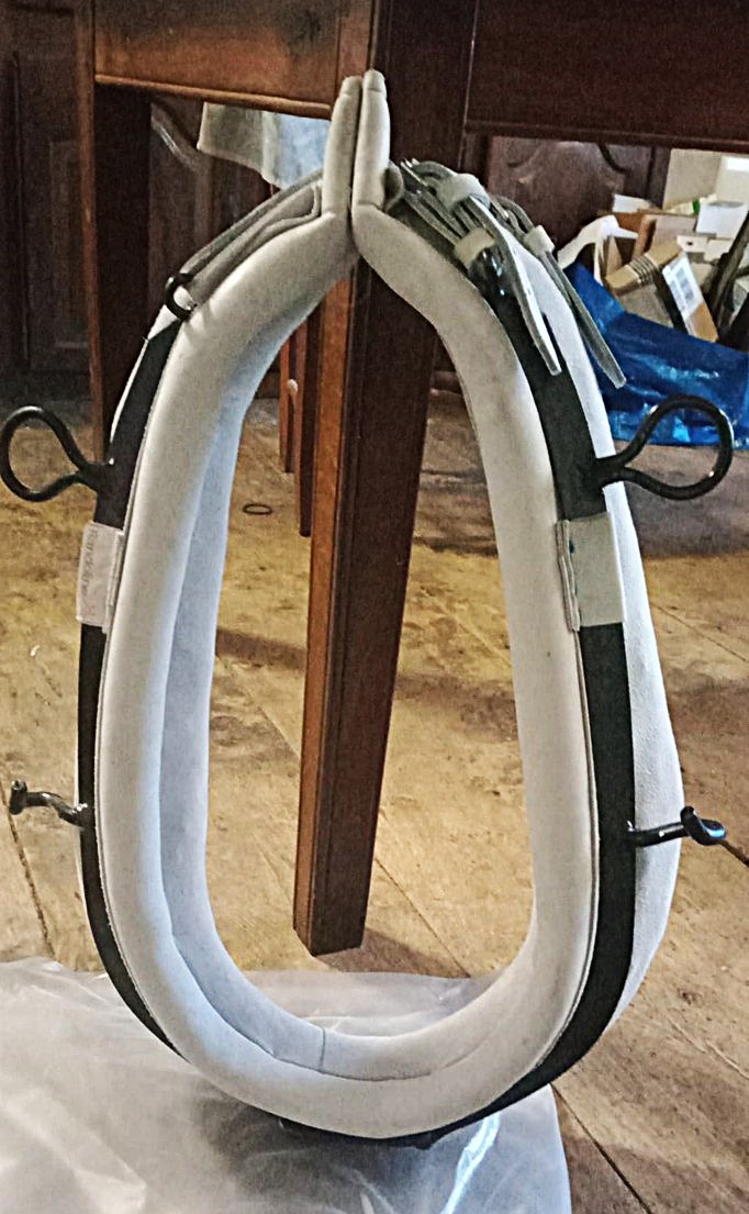 Pour faciliter cet entretien du collier ou Colisson on peu confectionner une sorte de housse, trouée avec 4 orifices pour laisser passer les crochets et les boucles. Cette la housse protégera utilement le colliers de la sueur de l animal de la sueur de et permettra pour un éventuel lavage.